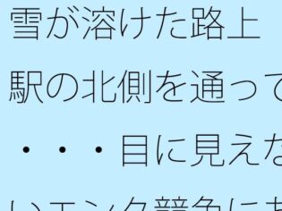 Uncategorized 雪が溶けた路上 駅の北側を通って・・・・目に見えないエンタ競争にあっぷあっぷしながら