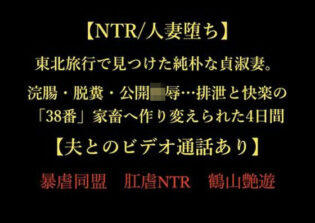 Uncategorized 【NTR/人妻堕ち】東北旅行で見つけた純朴な貞淑妻。浣腸・脱糞・公開陵●…排泄と快楽の「38番」家畜へ作り変えられた4日間【夫とのビデオ通話あり】